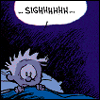Description: calvin from calvin and hobbes sitting sadly in bed with 'sighhhhhhh' in a speech bubble
